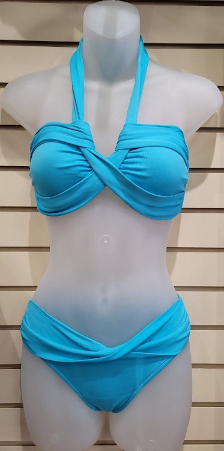 Make a splash with this Halter Bandeau Bikini! It's got all the features you need for a perfect day at the beach - soft cups for shape and support, quick-dry fabric, and side boning for defining your curves. Plus, the gripper tape prevents your suit from shifting around, and the soft ties add a personalized fit. And it's all held together with a back clip closure, so you can make a quick escape to the waves!