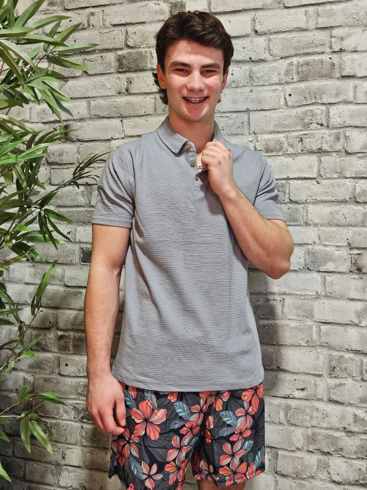Introducing the Short Sleeve Knit Top - perfect for those who crave comfort and style! Featuring a button collar and a trendy striped look, this top is sure to elevate your outfit. Easy to dress up or down for any occasion. (Bonus: The short sleeve design means no more annoying sleeve bunching!)